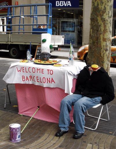 Keywords: Barcelona - Rambla 2.jpg La Rambla de Barcelona Own 2009-07-16 Zarateman cc-zero Living statues in La Rambla