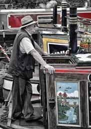 Keywords: barge canal man boat people transportation relaxation vessel houseboat narrowboat outdoors happy smiling male relaxed travel vacation lock mooring waterway colorful tourism heritage towpath navigation nature environment