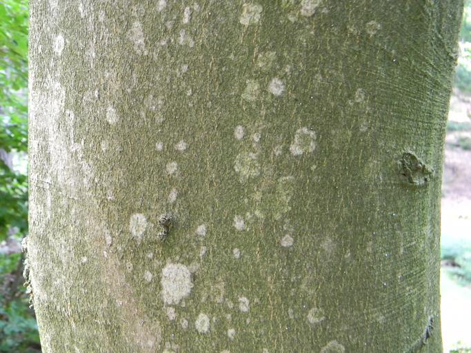 | Keywords: Bark of Fagus sylvatica with white spots.jpg de Weiße Flecken verursacht durch eingetrockneten Schleimfluss infolge Befalls des Buchenprachtkäfer Agrilus viridis oder evtl Flechten auf der Rinde einer Rotbuche Fagus sylvatica Own Jugrü 2010-09-03 Fagus sylvatica bark |