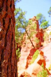 Keywords: bark tree conifer ocher rocks rock roussillon red reddish bright ocher quarry