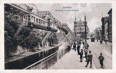 | Keywords: Barmen - Neuer Weg.jpg en Postcard undated ca 1914 Title Barmen - New way with monorail de Postkarte undatiert ca 1914 Titel Barmen - Neuer Weg mit Schwebebahn private collection of Wolfgang Sauber Xenophon Creator Unknown 2008-09-23 PD-1923 anonymous-EU Postcards of Wuppertal Historical images of Wuppertal Schwebebahn Historical images 1914 photographs of Wuppertal Black and white photographs of Wuppertal Black and white photographs of Germany in the 1910s | ||||