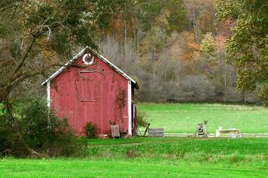 Keywords: barn red red paint amish countryside green grass field farm
