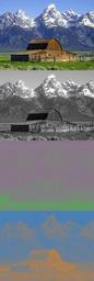Keywords: Barns grand tetons YCgCo separation.jpg en Shows the separation of the image into Y Cg and Co color components Based on the public domain photo Image Barns grand tetons jpg Devcore Color spaces John Moulton barn