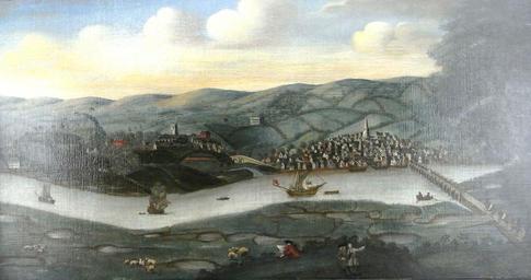 | Keywords: BarnstapleAndPilton OnRiverTaw Circa1746 MuseumOfBarnstapleAndNorthDevon.PNG en Barnstaple and Pilton undocumented 18th century oil painting now in the Museum of Barnstaple and North Devon Barnstaple showing a distant view from the west bank of the River Taw of the adjacent towns of Barnstaple and Pilton Museum of Barnstaple and North Devon has no information whether regarding provenance date or subject matter on this very large painting hanging on the wall of the first floor which dominates the staircase of the museum building in Barnstaple The central conspicuous element is a white stucco crenellated grand mansion house on the hill above between the two towns possibly Pilton House in the parish of Pilton a Georgian mansion house built in 1746 by Robert Incledon 1676-1758 twice Mayor of Barnstaple whose very ancient family originated at the manor of Incledon near Braunton It survives today and is in fact situated almost in the centre of the ancient town of Pilton near the church but had formerly extensive grounds covering at least 20 acres which extended down Pilton Lawn now built over to the River Yeo It later served as the residence for various Members of Parliament for Barnstaple for which it was well suited being only a 10-minute walk from the centre of that town yet in a secluded situation with extensive grounds and sufficiently large and grand for entertaining borough officials and electors The house depicted is a central element in the composition thus it was possibly commissioned by Robert Incledon 1676-1758 himself and donated to the Borough of Barnstaple by him The house may however represent Raleigh House in the parish of Pilton an even more important seat home of the Chichester family sometime lords of the manor of Barnstaple Castle Raleigh House was however in ruins in 1745 see Wikipedia Raleigh Pilton The costume of the gentlemen in the foreground is of the Georgian period 18th century Left St Mary's Church Pilton; Pilton Bridge over the River Yeo Right St Peter's Church Barnstaple with spire; Barnstaple Long Bridge over River Taw Rare view of bridge before present widening shown as just wide enough to accommodate a pack-horse train shown bottom right Painting shows view from Sticklepath Hill in parish of Tawstock Date 18th century post 1746 date of building of Pilton House Own photo Lobsterthermidor <span class signature-talk ></span> 20 44 29 November 2016 UTC Painting c 1746; photo 2013 Museum of Barnstaple and North Devon Barnstaple Pilton Devon Pilton House Pilton Long Bridge Barnstaple PD-old-100 |