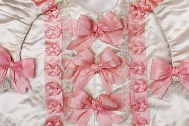| Keywords: Barntröja, bild tagen till dopboken 2012 - Livrustkammaren - 89951.tif Plagget ingÃ¥r i en babyutstyrsel som beställdes till det barn som Hedvig Elisabeth Charlotta felaktigt trodde sig vänta sommaren 1775 Plaggen har senare använts av de barn Hedvig Elisabeth Charlotta födde samt av Gustav IV Adolfs och drottning Fredrikas barn <br/><br/>Barntröjan är i vitt atlassiden och fodrad med taftsiden Tröjan är sydd av fyra delar och ärmarna av tvÃ¥ delar vardera FrÃ¥n nacken löper ett slingrande rosa sidenband bredd 24 mm och längd 336 mm samt en 20 mm bred spetskant som följer sidenbandet PÃ¥ framstycket mellan de slingrande banden dekor i form av tre stycken tvärgÃ¥ende sidenband längd 100 mm och tre rosetter 70 mm breda PÃ¥ bÃ¥da ärmarna finns en liknande rosa rosett av siden 70 mm bred fastsydd pÃ¥ en 40 mm bred linnespets PÃ¥ baksidan är tre vita sidenband fastsydda pÃ¥ var sin sida Banden är 195 mm lÃ¥nga och 34 mm breda med ett klippt zick-zackmönster i varje ända Tröjans vidd över bröstet är 500 mm The garment is part of a layette ordered for the child Hedvig Elisabeth Charlotta mistakenly believed to be pregnant with in summer 1775 The garment has subsequently been used by the children Hedvig Elisabeth Charlotta did have and by the children of Gustav IV Adolf and Queen Fredrika <br/><br/>The shirt is in white Atlas silk and lined with silk taffeta The shirt is made of four parts and the sleeves of two parts each From the neck runs a meandering pink silk ribbon width 24 mm and length 336 mm and a 20 mm wide lace trim that follows the silk ribbon On the front between the meandering ribbons decorations in the form of three transverse silk ribbons length 100 mm and three bows 70 mm wide On both sleeves is a similar pink bow made ‹ ‹of silk 70mm wide stitched on a 40 mm wide piece of linen lace On the back are three white silk ribbons sewn on each side The bands are 195 mm long and 34 mm wide with a cut zigzag pattern in each end The shirt measures 500 mm across the chest original caption Barntröja LRK 21512 bild tagen till dopboken 2012 <br/> Nyckelord Dopboken Gustav IV Adolf Barnkläder Rosa Tröja FöremÃ¥lsbild 1775 silk Färg vit D - DRÄKT material siden - silk Färg rosa D - DRÄKT material siden size mm 650 fram size mm 210 bak size mm 120 ärm size mm 80 ärm LRK Karl Adolf prins Gustav IV Adolf av Sverige place of origin original filename lm_dig3616 58039 inventory number LRK 21512 89951 CC-BY-SA Jens Mohr <gallery caption Different images of same object > File Barntröja Till boken Kanonsalut och vaggor - kungliga födslar och dop av Lena Rangström - Livrustkammaren - 90054 tif </gallery> Jens Mohr Baby clothing Pink ribbons 1770s fashion Media contributed by LSH dim-with multiple size templates Media contributed by LSH unmatched keyword Color images from Livrustkammaren Children's clothing in Livrustkammaren Silk clothing Atlas silk Pink and white clothing Lace trim Clothing details Pinking Media contributed by LSH 2013-10 |