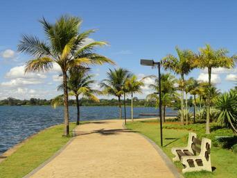 Keywords: barquisimeto venezuela palms palm trees tropics tropical bay water inlet grass nature outside scenic benches park sidewalk walkway sky clouds