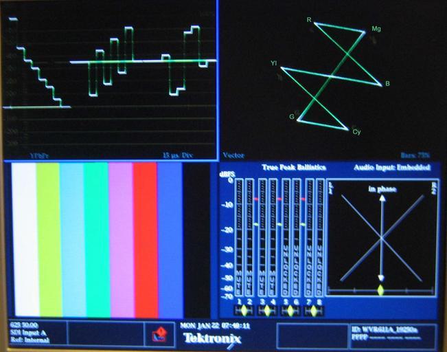 Keywords: Barras YUV.JPG Barras de color EBU en formato YUV Barra de color EBU en YUV 2007-01-22 own assumed Txo Source Fotografia propio --txo enero 2007 UTC Categories Test patterns Television screens
