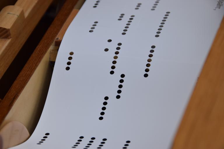 Keywords: barrel organ street organ mechanics music wood piano roll sound redirection old antique detail