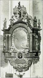 | Keywords: Bartels-Epitaph Luebeck.png Epitaph des Lübecker Ratsherren Diedrich von Bartels 6 März 1633 in Lübeck; 24 September 1689 ebenda ; 1693 errichtet in der Lübecker Marienkirche 1942 beim Luftangriff auf Lübeck zerstört Das Familienwappen zeigt im blau-golden geteilten Schild einen aufgerichteten schwarzen Bären der in seinen Vordertatzen eine goldene Krone hält Auf dem gekrönten Spangenhelm der gleiche Bär wachsend Gustav Schaumann Friedrich Bruns Bearb Die Bau- und Kunstdenkmäler der Freien und Hansestadt Lübeck Hrsg von der Baudeputation Band 2 Teil 2 Die Marienkirche Nöhring Lübeck 1906 https //archive org/stream/diebauundkunstde0202lbuoft page/366/mode/2up S 366 f http //www archive org/details/diebauundkunstde0202lbuoft Digitalisat 1905 https //archive org/stream/diebauundkunstde0202lbuoft page/n9/mode/2up oder davor Creator Johannes Nöhring This image is in the public domain due to its age PD-old-100 Johannes Nöhring Wall mounted church monuments in St Marien Lübeck before 1942 17th-century senators of Lübeck |