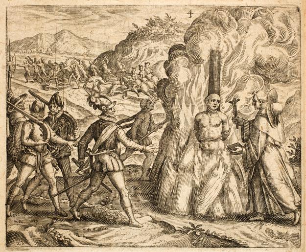| Keywords: Bartolomé de las Casas Regionum 355385740 MG 8837 016-4.tif nl Afbeelding 4 Mishandeling van indianen door Spanjaarden Verbranding aan de paal met priester en Figure 4 Abuse of Indians by Spaniards Burning at the stake with Catholic priest 1664 Institution Peace Palace Library Bartolomé de las Casas 1474-1566 Regionvm indicarum per Hispanos olim devastatarum accuratissima descriptio insertis figuris æneis ad vivum fabrefactis <br /> Publisher Heidelbergae typ Gvilielmi VValteri Printer Walter Wilhelm Heidelberg 1663-1676 Transl of Brevísima relación de la destrucción de las Indias - Sevilla Sebastian Trugillo 1552 <br /> Collection Peace Palace Library The Hague <br /> http //catalogue ppl nl/DB 1/SET 3/TTL 1/CMD ACT SRCHA IKT 1016 SRT YOP TRM ppn+355385740 Link to signature in catalogue Bartolomé de las Casas 1474-1566 Engraver Photography D-vorm Bert en Lilian Mellink Custom license marker 2014 04 11 PD-Art-100 D-Vorm Peace Palace Library collection Uploaded with UploadWizard Prints from Bartolomé de las Casas Regionum Stake in medieval miniature Images from the Peace Palace Library |