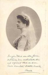 | Keywords: BASA-769К-1-24-1-Eleonora of Bulgaria.jpg Пощенска ка тичка с об аза на ца ица Елеоно а Бълга ска в а хива на Владими оллов Postcard with Eleonore Reuss of Köstritz before 1908 author ЦДА 769K Владими оллов 1 24 1 credit line exhibition history BASA Спасими <span class signature-talk >talk</span> 2013-02-12 other versions Anonymous-EU Eleonora of Bulgaria |