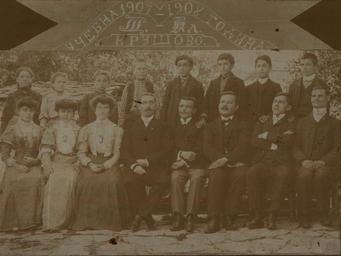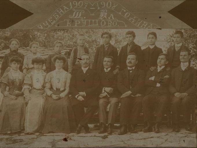| Keywords: BASA-771K-1-206-1-Krushevo Teachers, 1908.jpg Снимка на учителите от К ушевското училище 1 Спасия Попнаумова 2 Фло а Иванова 3 а ия ицева 4 Ахил инчев ди екто на училището 5 икола Лешника 6 Илия Василев убит във Войданските събития 7 Гео ги Попбогданов самоубил се 8 атей ателянце Krushevo Teachers Spasia Popnaumova Flora Ivanova Maria Mitseva Ahil Minchev Nikola Leshnika Iliya Vasilev Georgi Popbogdanov and Matey 1908 author ЦДА 771K Колекция Спомени снимки и д уги на македонски дейци в македонското еволюционно движение 1 206 1 credit line exhibition history BASA Спасими <span class signature-talk >talk</span> 2015-08-31 other versions Anonymous-EU Kruševo Ahil Mindzhov |