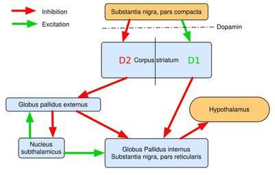 | Keywords: Basalganglia.svg Schematic presentation of the internal excitatory and inhibitory pathways in the basal ganglia Can be used to explain Parkinson's and Huntington's disease Author Sigve Holmen Neuroanatomy SVG files on Parkinson's disease Huntington's disease 2007-01-09 own assumed Sigve |