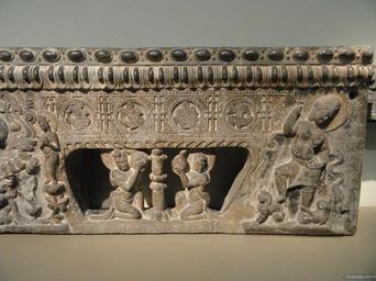 | Keywords: Base of a funerary couch (shichuang) with Sogdian scenes, view 5, Henan province, probably Ce xian, China, Period of Division, Northern Qi dynasty, 550-577 AD, marble with pigment - Freer Gallery of Art -.JPG en Exhibit in the Freer Gallery of Art Washington DC USA This artwork is old enough so that it is in the public domain Photography was permitted in the museum without restriction 2013-02-12 16 00 37 own Daderot cc-zero Funerary couch Freer Gallery Uploaded with UploadWizard | ||||
