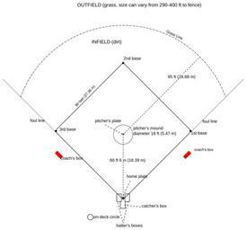 | Keywords: Baseball field overview.svg SVG source of the baseball field diagram Created by en User Robert Merkel using en sodipodi and placed in the public domain by the author Created by en User Robert Merkel using en sodipodi and placed in the public domain by the author Later version s were uploaded by Gareth Owen Remember the dot at http //en wikipedia org en wikipedia File Baseball_field_overview png en wikipedia Robert Merkel original upload log page en wikipedia Baseball_field_overview svg 2007-02-21 04 59 Remember the dot 815×759×0 19310 bytes <nowiki>fixed to be readable using Inkscape 0 45</nowiki> 2003-07-24 23 16 Robert Merkel 744×1052×0 18170 bytes <nowiki>fixed labels</nowiki> 2003-07-24 17 01 Gareth Owen 744×1052×0 17780 bytes <nowiki>Amended version</nowiki> 2003-07-24 12 56 Robert Merkel 744×1052×0 18335 bytes <nowiki>fixed version</nowiki> 2003-07-24 12 22 Robert Merkel 744×1052×0 16035 bytes <nowiki>SVG source of the baseball field diagram</nowiki> Baseball field diagrams SVG sport field diagrams |