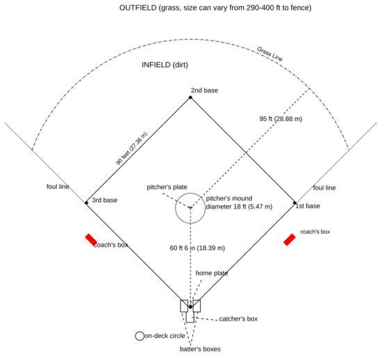 | Keywords: Baseball field overview.svg  SVG source of the baseball field diagram Created by en User Robert Merkel using en sodipodi and placed in the public domain by the author Created by en User Robert Merkel using en sodipodi and placed in the public domain by the author Later version s were uploaded by Gareth Owen Remember the dot at http //en wikipedia org en wikipedia File Baseball_field_overview png en wikipedia Robert Merkel original upload log page en wikipedia Baseball_field_overview svg 2007-02-21 04 59 Remember the dot 815×759×0 19310 bytes <nowiki>fixed to be readable using Inkscape 0 45</nowiki> 2003-07-24 23 16 Robert Merkel 744×1052×0 18170 bytes <nowiki>fixed labels</nowiki> 2003-07-24 17 01 Gareth Owen 744×1052×0 17780 bytes <nowiki>Amended version</nowiki> 2003-07-24 12 56 Robert Merkel 744×1052×0 18335 bytes <nowiki>fixed version</nowiki> 2003-07-24 12 22 Robert Merkel 744×1052×0 16035 bytes <nowiki>SVG source of the baseball field diagram</nowiki> Baseball field diagrams SVG sport field diagrams |