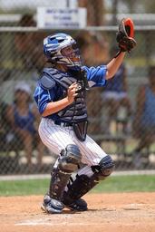 Keywords: baseball game player catcher sport field competition summer action play outdoor young ready athlete uniform athletics dirt home plate glove helmet catcher's mask catcher's mitt