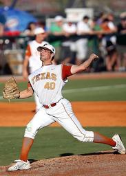 Keywords: baseball pitcher texas throw pitch pitching competition game player athlete sport ball action mound infield outdoors uniform throwing grass glove male ncaa college texan