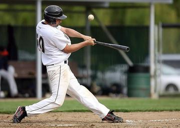 Keywords: baseball player batter game ball sport field athlete summer bat competition play action home dirt infield foul ball hit plate athletic swing helmet hitter male swinging canada canadian baseball player