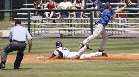 Keywords: baseball sliding action player game sport safe field competition dirt runner slide uniform helmet athlete infield glove umpire call ruling athletics base