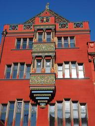 Keywords: basel city hall balcony looking facade exterior facade town hall basel building architecture red sand stone representative building basler marketplace