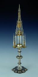 | Keywords: Basel Munster treasury Hüglin monstrance 1882-79 HMB c4308.jpg object type LangSwitch Basle ca 1505; Silver cast embossed parcel gilt with enamel; height 88 7 cm; Inv 1882 79 Bâle vers 1505; Argent fondu repoussé partiellement doré avec émail; H 88 7 cm; Inv 1882 79 Basel um 1505; Silber gegossen getrieben teilweise vergoldet mit Email; H 88 7cm; Inv 1882 79 place of creation before 1509 Silber geschmiedet getrieben gegossen ziseliert poliert teilweise vergoldet; transluzide Emails aus Grubenschmelz; neues Zylinderglas Gewicht 2394 0 g H 88 4 cm; B 22 4 cm Fuss Institution Historisches Museum Basel object history credit line accession number Inv 1882 79 Peter Portner Institution Historisches Museum Basel artwork license PD-old-100 photo license cc-by-sa-4 0 photo date 2007-01-08 14 59 14 other versions 47 5544 7 59 cc-by-sa-4 0 Historisches Museum Basel CH-HMB Basel Cathedral Treasury Uploaded with UploadWizard Basler Münsterschatz Christian art |