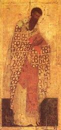 | Keywords: Basil the Great (Annunciation Cathedral in Moscow).jpg Икона святого Василия Великого 13 икон Деисуса п едставляют святых в полный ост об ащенных с молитвой о спасении г ешного человечества к восседающему на п естоле с еди сил небесных Спасителю Его икона Спас в Силах находится в цент е яда и является самым значительным об азом этой многоя усной конст укции иконостаса В состав Деисуса главного иконостаса Благовещенского собо а входят Богомате ь и Иоанн П едтеча а хангелы ихаил и Гав иил апостолы Пет и Павел отцы це кви Иоанн Златоуст и Василий Великий Вдоль южной и севе ной стен собо а в заво от стояли об азы великомучеников Гео гия и Дмит ия а также столпников Даниила и Симеона Цент альное яд о из девяти икон конца XIV в исследователи связывают с г еческим иконописцем ве оятно Феофаном Г еком кото ый аботал в это в емя п и дво е московского князя http //www kreml ru/ru/museums/annunciation/icons/Deisus/ 14 c Feofan Grek Main iconostasis of Annunciation Cathedral in Moscow D02 Files uploaded by Shakko from various sources PD-old-100 Icons by Feofan Grek Icons of Basil of Caesarea |