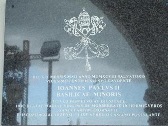 | Keywords: BasilicaMenor-HormiguerosPR-01.JPG Placa conmemorativa de la elevación a Basílica por Juan Pablo II en 1998 Own 2008-02-10 Jcarrillovii PD-old Check categories 2008 November 7 es wikipedia Basílica_Menor_Nuestra_Señora_de_la_Monserrate Basilica Menor Nuestra Señora de la Monserrate |