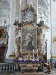 | Keywords: Basilika Vierzehnheiligen 010.JPG Die Basilika Vierzehnheiligen bei Bad Staffelstein im Landkreis Lichtenfels ist eine Wallfahrtskirchen in Oberfranken <br>Side altar on the right of the main altar Basilica of the Fourteen Holy Helpers Bad Staffelstein near Bamberg in Bavaria Germany Own Mattana 2009-04-16 Images by Mattana-Bamberg Germany Baroque altars in Basilika Vierzehnheiligen | ||||