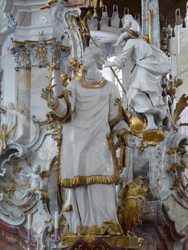| Keywords: Basilika Vierzehnheiligen 018.JPG Altar of the Vierzehnheiligen Die Basilika Vierzehnheiligen bei Bad Staffelstein im Landkreis Lichtenfels ist eine Wallfahrtskirchen in Oberfranken <br>A statue of one of the saints on the Altar of the Fourteen Holy Helpers Basilica of the Fourteen Holy Helpers Bad Staffelstein near Bamberg in Bavaria Germany Own Mattana 2009-04-16 Images by Mattana-Bamberg Germany Fourteen Holy Helpers in Basilika Vierzehnheiligen | ||||