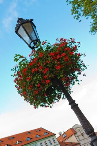 Keywords: basket beautiful colorful decoration decorative flora floral flower flowers hang hanging iron street lamp lantern light lamp post sky traditional
