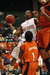 Keywords: basketball college player shooting shot defenders competition ball game sport team playing action active school activity arena uniform competitor concentration ncaa texas