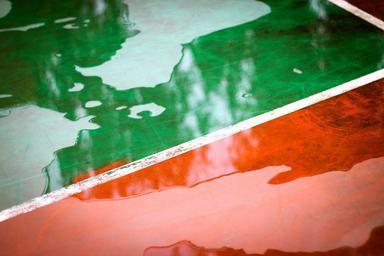 Keywords: basketball court contrasting colors orange green bright court sports basketball rain