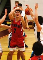 Keywords: basketball player ball sport game athlete competition basketball player action court male athletic young play competitor high school uniform pass canadian canada funny face expression