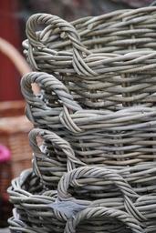 Keywords: baskets woven reputed structure wattle wicker natural material hand labor wicker basket craft sales stand decorative braid regularly stacked carry cot