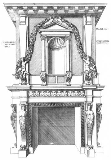 | Keywords: Bastiments v1 (Gregg 1972 p38) - Madrid fireplace design for a chamber.jpg Engraving from Le premier volume des plus excellents Bastiments de France by Jacques I Androuet du Cerceau fireplace design for a chamber in the Château de Madrid Scan Androuet Jacques 1576 Le premier volume des plus excellents Bastiments de France Paris Reduced size reprint Gregg International 1972 ISBN 9780576154086 1576 Creator Jacques I Androuet du Cerceau PD-Art-100 Le premier volume des plus excellents Bastiments de France Gregg 1972 reprint Château de Madrid Drawings of castles in France |