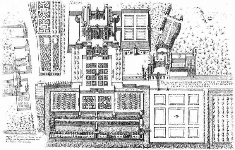| Keywords: Bastiments v1 (Gregg 1972 p73) - Verneuil general bird's-eye view garden side first design.jpg Engraving from Le premier volume des plus excellents Bastiments de France by Jacques I Androuet du Cerceau Château de Verneuil-sur-Oise Bird's-eye view of the garden side of the first design Scan Androuet Jacques 1576 Le premier volume des plus excellents Bastiments de France Paris Reduced size reprint Gregg International 1972 ISBN 9780576154086 1576 Creator Jacques I Androuet du Cerceau PD-Art-100 Le premier volume des plus excellents Bastiments de France Gregg 1972 reprint Château de Verneuil-sur-Oise Bird's-eye view |