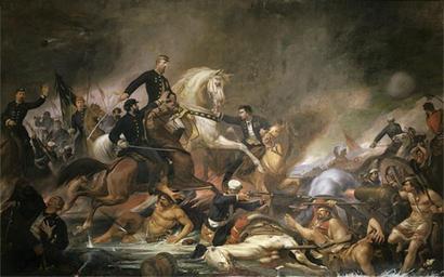 | Keywords: Batalha de Campo Grande - 1871.jpg Artwork Creator Pedro Américo Batalha de Campo Grande Battle of Campo Grande 1871 Oil on canvas cm 332 530 Institution Museu Imperial http //www dezenovevinte net/bios/bio_pa_arquivos/pa_1871_campogrande jpg Other versions PD-old-100 Herculano Sancho da Silva Pedra Paintings by Pedro Américo Academic paintings in Brazil Paintings in the Museu Imperial War of the Triple Alliance 19th-century paintings of battles History of Brazil 1840-1889 Pedro II Reign 1870s paintings from Brazil Prince Gaston Count of Eu Alfredo d'Escragnolle Taunay 19th-century oil on canvas paintings Night in paintings ImageNote 1 100 131 22 25 620 387 2 Alfredo d'Escragnolle Taunay Viscount of Taunay ImageNoteEnd 1 ImageNote 2 211 75 29 28 620 387 2 Gaston Count of Eu ImageNoteEnd 2 ImageNote 3 515 235 18 20 620 387 2 Pedro Américo self-portrait; the painter did not fight in the war ImageNoteEnd 3 ImageNote 4 503 241 13 15 620 387 2 Aurélio de Figueiredo brother of Pedro Américo ImageNoteEnd 4 ImageNote 5 330 146 24 24 620 387 2 Captain Almeida Castro ImageNoteEnd 5 ImageNote 6 172 138 23 21 620 387 2 Rufino Eneias Gustavo Galvão then Colonel later the Viscount of Maracajú ImageNoteEnd 6 ImageNote 7 540 162 14 14 620 387 2 Colonel Herculano Sancho da Silva Pedra ImageNoteEnd 7 ImageNote 8 63 274 27 24 620 387 2 Captain Arouca ImageNoteEnd 8 ImageNote 9 17 249 30 28 620 387 2 Friar Fidelis d ™Avila ImageNoteEnd 9 ImageNote 10 156 149 15 18 620 387 2 Major Benedicto de Almeida Torres ImageNoteEnd 10 ImageNote 11 18 122 19 22 620 387 2 Captain João Mendes Salgado of the Brazilian Navy ImageNoteEnd 11 ImageNote 12 71 167 16 16 620 387 2 Lieutenant Colonel Carlos de Morais ImageNoteEnd 12 |