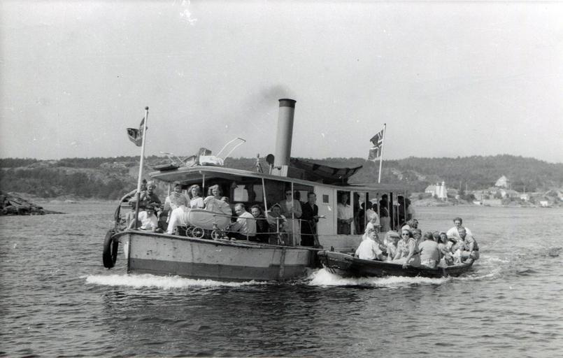| Keywords: blackandwhite outdoor vehicle boat black and white ”Pelle”, som var i drift til 1961, er på vei fra Arendal til Merdø. Bildet er tatt ytterst i Galtesund med Sandvikodden fyr og Hisøya i bakgrunnen. For å få med alle passasjerene måtte ”Pelle” av og til benytte en pram som ekstrabåt. Bildet formidler gemyttlig sommerstemning for vel 60 år siden, og mange sikkerhetskrav er kommet til etter den tid. Har du minner fra reiser med ”Pelle”, eller fra ferier i dette området? Foto: B. Dannevig. Landslaget for reiselivet i Norge (PA-722_Uaa_6_31). Publisert som en del av prosjektet #arkivsommer sommeren 2014. ”Pelle”, som var i drift til 1961, er på vei fra Arendal til Merdø. Bildet er tatt ytterst i Galtesund med Sandvikodden fyr og Hisøya i bakgrunnen. For å få med alle passasjerene måtte ”Pelle” av og til benytte en pram som ekstrabåt. Bildet formidler gemyttlig sommerstemning for vel 60 år siden, og mange sikkerhetskrav er kommet til etter den tid. Har du minner fra reiser med ”Pelle”, eller fra ferier i dette området? Foto: B. Dannevig. Landslaget for reiselivet i Norge (PA-722_Uaa_6_31). Publisert som en del av prosjektet #arkivsommer sommeren 2014. |