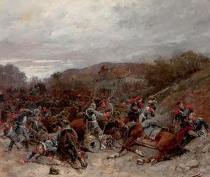 | Keywords: Battle Scene from the Franco-Prussian War-Wilfrid Constant Beauquesne-1896.jpg 1896 Oil on canvas laid on masonite 18 x 21-1/2 inches 45 7 x 54 6 cm object history exhibition history credit line accession number http //fineart ha com Heritage Auctions PD-old-70 Wilfrid Constant Beauquesne Battles of the Franco-Prussian War 1896 paintings Images from Heritage Auctions | ||||