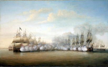 | Keywords: Battlescene1.jpg en The Battle of Negapatam 1782 between the French and the English Source http //www nmm ac uk/searchbin/searchs pl exhibit it0516i axis 1101400722 flash true dev downloaded Dec 2004 Battle of Negapatam 6 July 1782 Artist Dominic Serres the Elder Date 1786 Oil on canvas 1117 6 x 1828 8 mm National Maritime Museum London Greenwich Hospital Collection The French were seeking to take control of the British-held port of Negapatam on the eastern coast of India There was no clear result but the British managed to force a French retreat The action was fought with the two opposing fleets lined up in their squadrons firing at each other This line formation dominated sea warfare in the 18th century 1782 http //www columbia edu/itc/mealac/pritchett/00routesdata/1700_1799/coromandel/negapatam/negapatam html Dominic Serres the Elder PD-old-100 Uploaded with UploadWizard Wars of France Wars of the United Kingdom |