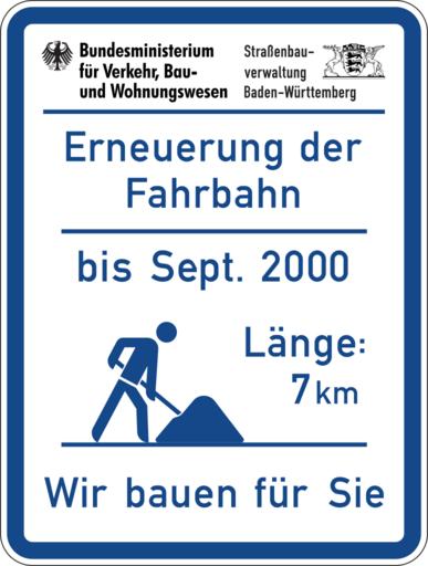Keywords: Baustelleninformationsschild Bundesautobahn, BASt, November 1998.svg de Baustelleninformationsschild für Bundesautobahnen Entsprechend dem Allgemeinen Rundschreiben Straßenbau Nr 39/1998 vom 12 Oktober 1998 StB 28/38 59 05/36 Va 98 und der Verkündigung im Verkehrsblatt vom 12 November 1998 Diese Verkündigung trat am 12 November 1998 in Kraft Allgemeinen Rundschreiben Straßenbau Nr 39/1998 Verkehrsblatt 23 vom 12 November 1998 Bundesanstalt für Straßenwesen BASt 12 November 1998 + Signs User Mediatus/no-new-version PD-GermanGov Cc-zero Diagrams of construction road signs of Germany Roadworks signs Diagrams of motorway road signs of Germany 1998 set Diagrams of information road signs of Germany |
