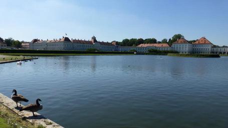 Keywords: bavaria castle nymphenburg munich water lake sky blue