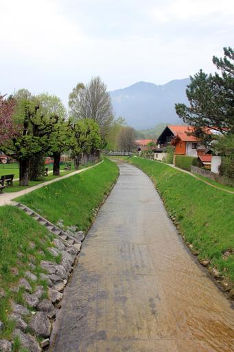 Keywords: bavaria chiemgau river water water running landscape homes away mountains unterwössen