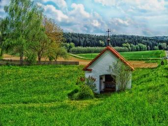 Keywords: bavaria germany landscape scenic hdr sky clouds nature outside chapel forest trees fields rural countryside