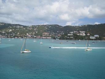 Keywords: bay ocean sailboats turquoise coast coastline seascape view idyllic boating water
