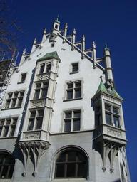 Keywords: bay window ulm downtown home housewife decorated turret window building facade stucco stucco façade architecture old town sky blue