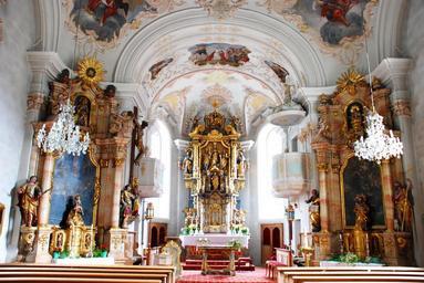 | Keywords: Bayrischzell St. Margareth Innen.JPG Innenraum der Kirche St Margareth in Bayrischzell Landkreis Miesbach Regierungsbezirk Oberbayern Bayern Gebäude als Baudenkmal in der Bayerischen Denkmalliste aufgeführt Laut Denkmalliste in den Jahren 1733/1734 erbaut own 2011-09-04 15 00 13 Rudolph Buch Interior of St Margareth Bayrischzell |