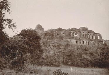| Keywords: Baz Bahadur’s Palace at Mandu in Madhya Pradesh in the 1880s.jpg en Photograph of Baz Bahadur ™s Palace at Mandu in Madhya Pradesh taken by Raja Deen Dayal Sons in the 1880s from the Curzon Collection 'Views of places proposed to be visited by Their Excellencies Lord Lady Curzon during Autumn Tour 1902' Lord Curzon served as Viceroy of India between 1899 and 1905 This is a view of the ruined palace and shows the façade rising out of the undergrowth with trees in the foreground Mandu became a hillfort as early as the 6th century but it was not until the 10th century that it gained prominance under the Paramara dynasty Most of the surviving architecture was built between 1401 and 1531 when the city was the thriving capital of the Sultans of Malwa They renamed the fort ˜Shadiabad ™ City of Joy and built palaces mosques and tombs beside gardens and lakes within its walls After the fall of the Malwa Sultanate Daulat Khan ruled Mandu as Sultan Baz Bahadur from 1555 until 1561 when he was deposed by the Mughal Emperor Akbar r 1556-1605 The Palace of Baz Bahadur stands on a hill above the sacred tank Rewa Kund contained in the royal enclosure in southern Mandu It was built in c 1509 before Baz Bahadur came to power but was occupied by him s 1880 http //www oldindianphotos in/search updated-min 2008-12-01T00 00 00 2B05 30 updated-max 2009-01-01T00 00 00 2B05 30 max-results 50 Creator Lala Deen Dayal Custom license marker 2014 09 07 1905 Uploaded with UploadWizard Black and white photographs by Lala Deen Dayal Baz Bahadur Mahal British Library Photo 430 Curzon Collection |