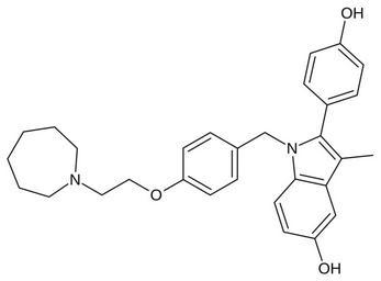 Keywords: Bazedoxifene.svg Structural diagram of bazedoxifene Created using http //www acdlabs com/download/chemsk html ACD/ChemSketch 8 0 and Inkscape Own 2006-11-05 Fvasconcellos Selective estrogen receptor modulators Azepanes Indoles Phenols